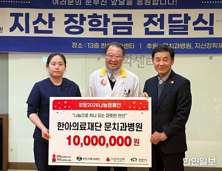 한민일보 서울포커스 황준형 기자 | (재)천안시복지재단은 지난 22일 한아의료재단 문치과병원이 학업장려금 3,000만 원을 기탁했다고 밝혔다.