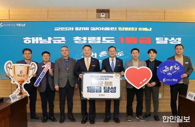 한민일보 서울포커스 박용남 기자 | 해남군이 국민권익위원회가 실시한 2025년 공공기관 종합 청렴도평가에서 최고 등급인 1등급을 달성했다. 2002년 공공기관 청렴도 평가 시행 이후 해남군 최초의 성과이다.