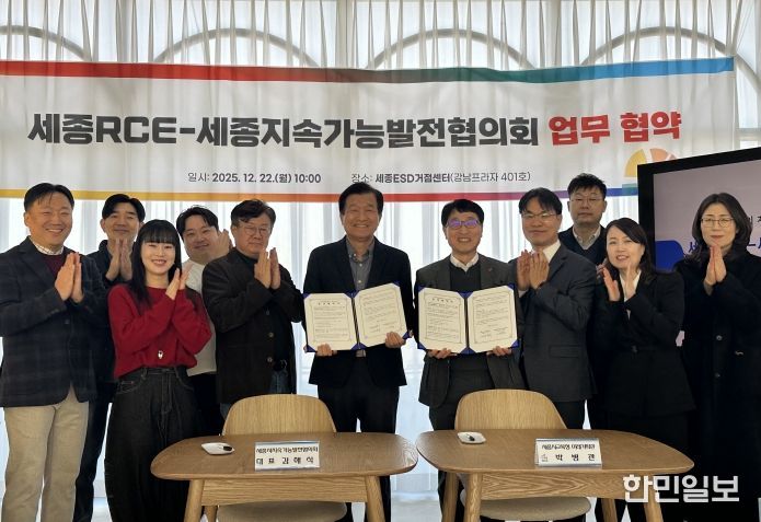 한민일보 서울포커스 임경복 기자 | 세종특별자치시교육청은 12월 22일에 ‘세종지속가능발전교육센터’(세종RCE, 강남프라자 401호)에서 세종지속가능발전협의회(상임대표 김해식)와 ‘지속가능발전교육 활성화’를 위한 업무협약을 체결했다.
