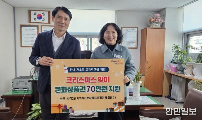 한민일보 서울포커스 임광현 기자 | 부산 동래구 사직2동 행정복지센터는 지난 18일 사직2동 지역사회보장협의체(위원장 최현수)로부터 크리스마스를 맞아 70만 원 상당의 문화상품권을 전달받았다고 밝혔다.