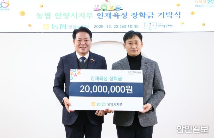 한민일보 서울포커스 김성윤 기자 | 안양시 인재육성재단이 지난 22일 농협 안양시지부로부터 인재육성을 위한 장학금 2천만 원을 기탁받았다고 23일 밝혔다.