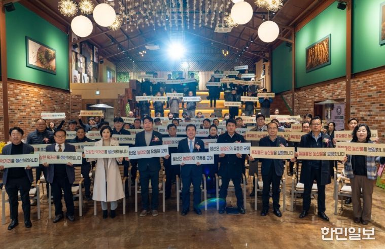 한민일보 서울포커스 김다남 기자 | 충북 증평군은 23일 도안창고플러스에서 먹거리통합지원센터 출하 농가 조직인 ‘증평군 먹거리 생산자 연합회’ 발대식을 열고 지역 먹거리 선순환 체계 구축을 위한 첫걸음을 내디뎠다.