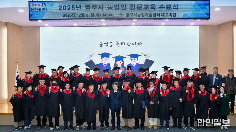 한민일보 서울포커스 김봉순 기자 | 영주시는 지난 23일 농업기술센터 대교육관에서 '2025년 농업인 전문교육 수료식'을 열고, 1년간의 교육 과정을 마친 교육생 74명의 수료를 축하했다.