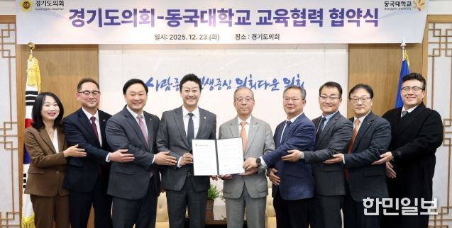 한민일보 서울포커스 김윤이 기자 | 경기도의회는 23일 오전 의장 접견실에서 동국대학교와 교육협력 및 학술교류를 위한 업무협약(MOU)을 체결했다.
