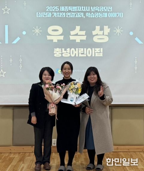 한민일보 서울포커스 김윤이 기자 | 세종시사회서비스원이 운영하는 충녕어린이집과 반곡하나어린이집이 지난 4일 세종시육아종합지원센터 강당에서 개최한 2025년 세종특별자치시육아종합지원센터 보육공모전 ‘실천과 가치의 연결고리, 학습공동체 이야기’에서 각각 우수상과 장려상을 수상했다.