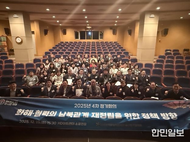한민일보 서울포커스 기자 | 민주평화통일자문회의 울산동구협의회(회장 장예식)는 12월 23일 오후 3시 30분 HD아트센터 소공연장에서 자문위원 등 50여 명이 참석한 가운데 ‘화해·협력의 남북 관계 재정립을 위한 정책 방향’을 주제로 2025년 4차 정기 회의를 개최했다.