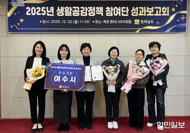 한민일보 서울포커스 임광현 기자 | 여수시가 2025년 생활공감정책 참여단 평가에서 전남도 시·군 가운데 1위를 차지해 도지사 기관 표창을 수상했다.