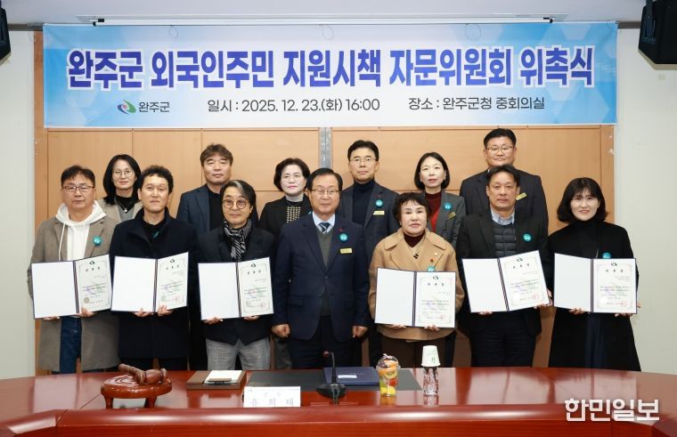 한민일보 서울포커스 박용남 기자 | 완주군이 외국인 주민 지원 정책의 체계적 추진을 위해 ‘외국인주민 지원시책 자문위원회’를 구성하고, 지난 23일 중회의실에서 위촉식을 열었다.