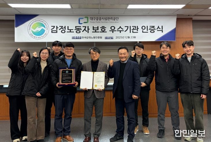 한민일보 서울포커스 김봉순 기자 | 대구공공시설관리공단은 12월 23일, 고객 응대 직원 보호를 위한 지속적인 정책 운영 성과를 인정받아 ‘감정노동자 보호 우수기관 인증’을 획득했다.