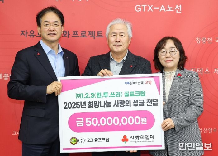 한민일보 서울포커스 김은금 기자 | 고양특례시는 24일, 고양시 덕양구 창릉동에 소재한 1.2.3(원투쓰리) 골프클럽에서 어려운 이웃을 위한 사랑의 성금 5천만 원을 전달했다고 밝혔다.