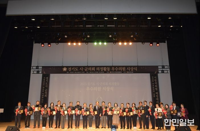 한민일보 서울포커스 임경복 기자 | 경기도시·군의회의장협의회(회장 김승호)는 2025년 12월 24일(수) 오후 2시, 동두천시 시민회관 1층 공연장에서 '2025 경기도시·군의회 의정활동 우수의원 시상식'을 개최했다.