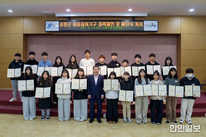 한민일보 서울포커스 김다남 기자 | 충북 증평군은 지난 23일 군청 대회의실에서 ‘2025년 아동참여기구 해단식’을 열고, 아동의 참여권 보장과 아동친화적 정책 실현을 위해 운영해 온 아동참여기구 활동을 마무리했다.