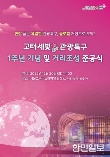 한민일보 서울포커스 곽중희 기자 | 서울 서초구는 고터·세빛 관광특구 지정 1주년을 맞아 오는 30일 14시 서울고속터미널 광장 일대에서 관광특구의 본격적인 도약을 알리는 '고터·세빛 관광특구 1주년 기념 및 거리조성 준공식'을 개최한다고 밝혔다.