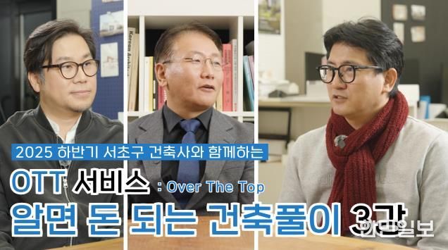 이번 콘텐츠에는 ㈜테바건축사사무소 한상환 건축사, 건축사사무소 틔움 차석헌 건축사, 소하건축사사무소 최성호 건축사가 참여했다. 현장에서 쌓은 경험을 바탕으로 한 설명과 건축사들 간 자연스러운 대화 호흡이 관전 포인트로 건축을 처음 접하는 구민들도 재미있게 시청할 수 있도록 구성됐다. 콘텐츠는 서초구 유튜브 채널인 ‘서초큐’에서 누구나 자유롭게 시청할 수 있다.