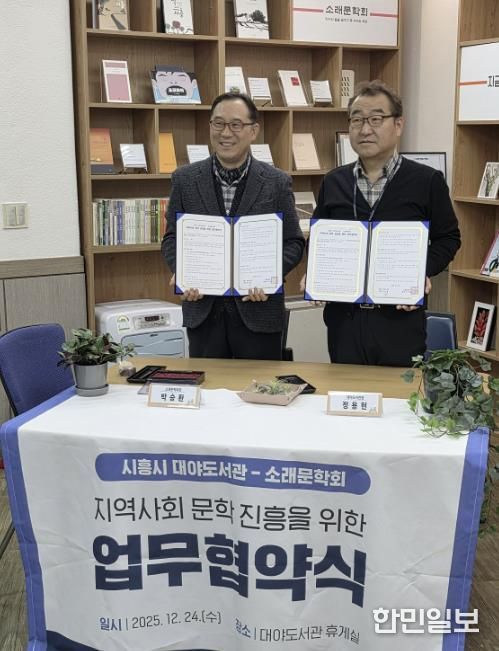 한민일보 서울포커스 유현민 기자 | 시흥시 대야도서관은 지역 문학단체인 소래문학회와 지난 12월 24일, 대야도서관 휴게실에서 지역 문학 진흥 및 독서문화 확산을 위한 업무협약을 체결했다.