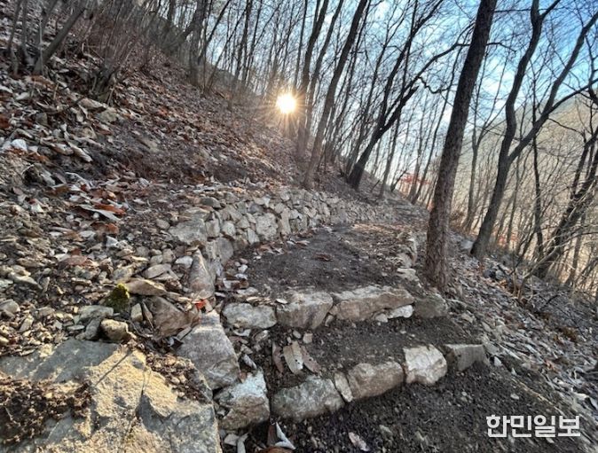 이번 사업에 약 2억 원이 투입됐으며 산책로 이용객들의 안전사고 예방과 자연 친화적 산책로 조성을 위해 노면을 고르게 정비하고 방향안내판, 안전로프난간, 돌계단, 돌배수로 등을 설치했다.