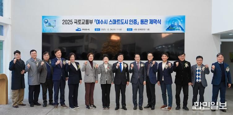 한민일보 서울포커스 임광현 기자 | 여수시는 호남권 최초로 국토교통부 주관 ‘2025년 스마트도시 인증’에 선정되면서 지난 24일 시청 본관 1층 로비에서 동판 제막식을 개최했다.