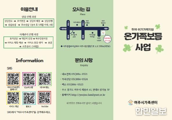 한민일보 서울포커스 전희주 기자 | 여주시가족센터는 가족의 다양성을 존중하고 취약·위기가정의 안정적인 삶을 지원하기 위해 '온가족보듬사업'을 적극적으로 운영했다.