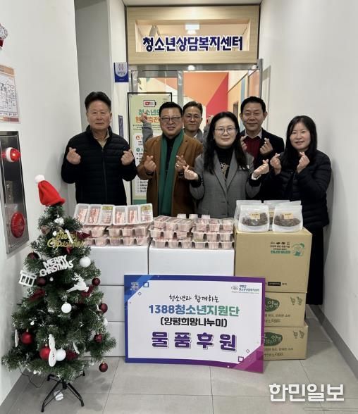 한민일보 서울포커스 차재만 기자 | 양평군청소년상담복지센터는 지난 24일 1388청소년지원단으로부터 위기청소년을 위한 후원물품을 전달받았다고 밝혔다. 이날 전달식에는 임청우 단장과 양평 목우촌 문현길 대표가 참석해 돼지고기와 둥굴레차 세트 70개를 양평군청소년상담복지센터와 양평군학교밖청소년지원센터에 기부했다.