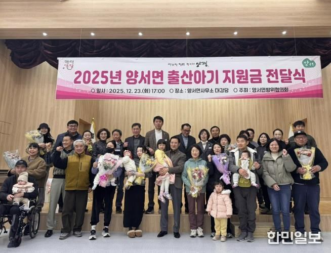 한민일보 서울포커스 차재만 기자 | 양서면 방위협의회는 지난 23일 저출산 극복과 출산 장려 분위기 조성을 위해 ‘2025년 양서면 출산아기 지원금 전달식’을 개최했다.