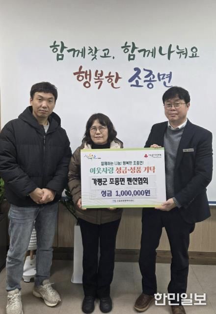 한민일보 서울포커스 최성훈 기자 | 가평군 조종면 펜션협회는 지난 24일 조종면 행정복지센터를 방문해 이웃돕기 성금 100만원을 기탁하며 온기를 더했다.