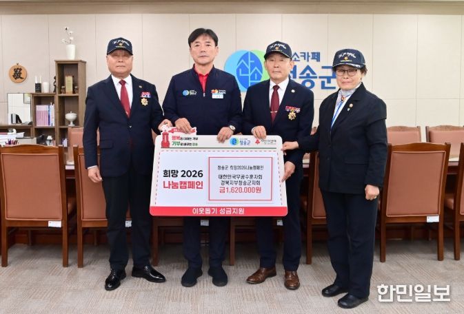 한민일보 서울포커스 김봉순 기자 | 청송군은 26일 대한민국무공수훈자회 경북지부 청송군지회(회장 신종수)가 청송군을 방문해 지역 내 도움이 필요한 이웃들을 위한 성금 162만 원을 기탁했다고 밝혔다.