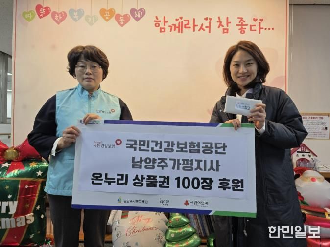 한민일보 서울포커스 김성윤 기자 | 남양주시는 지난 23일, 국민건강보험공단 남양주가평지사가 지역 내 취약계층 지원을 위해 온누리상품권 100만 원을 남양주시 사회복지관 동부희망케어센터에 기탁했다고 밝혔다.