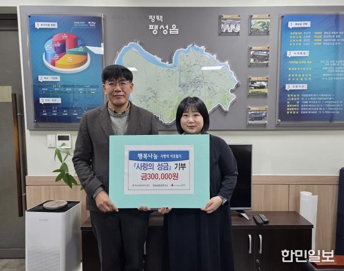 한민일보 서울포커스 황준형 기자 | 경토리민요연구소의 박정은 대표는 지난 24일, 팽성읍 행정복지센터를 방문해 저소득 가구 지원을 위한 성금 30만 원을 전달했다.