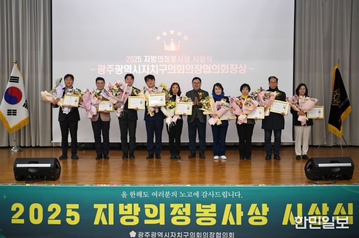 한민일보 서울포커스 임경복 기자 | 광주광역시자치구의회의장협의회(회장 김명수)가 26일 광산구청 7층 윤상원홀에서 ‘2025년 하반기 지방의정봉사상’ 시상식을 개최했다.
