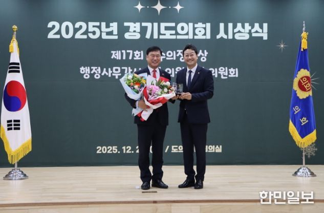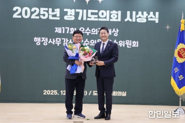 한민일보 서울포커스 김윤이 기자 | 경기도의회 교육기획위원회 이택수 의원(국민의힘, 고양8)과 성기황 의원(더불어민주당, 군포2)이 26일 열린 2025년 경기도의회 시상식에서 ‘2025년 행정사무감사 우수위원’으로 선정됐다.