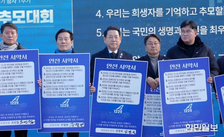 김영록 지사는 추모사를 통해 “179명의 희생자를 마음 깊이 애도하며, 1년 전 멈춰버린 시간 속에서 하루하루를 견뎌온 유가족께 진심으로 위로의 말씀을 드린다”며 “1년이라는 시간이 흘렀지만 그날의 진실은 여전히 차가운 둔덕 너머에 멈춰 있다는 현실이 안타깝다”고 말했다.