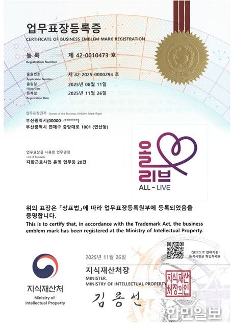 한민일보 서울포커스 임광현 기자 | 부산시는 지자체 최초로 시 대표 자활정책 브랜드인 '올리브(ALL-LIVE)'를 특허청에 상표로 등록했다고 밝혔다.