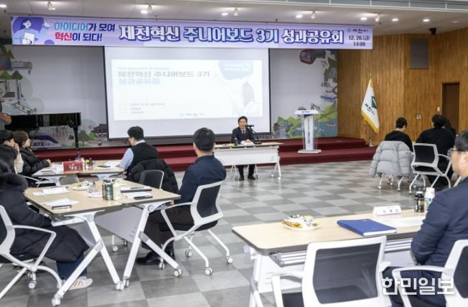 한민일보 서울포커스 김다남 기자 | 제천시는 지난 26일 ‘제천혁신 주니어보드 성과공유회’를 개최하고, 주니어보드 3기가 지난 1년간 발굴한 혁신 아이디어를 발표하고 공유하는 뜻깊은 시간을 가졌다.