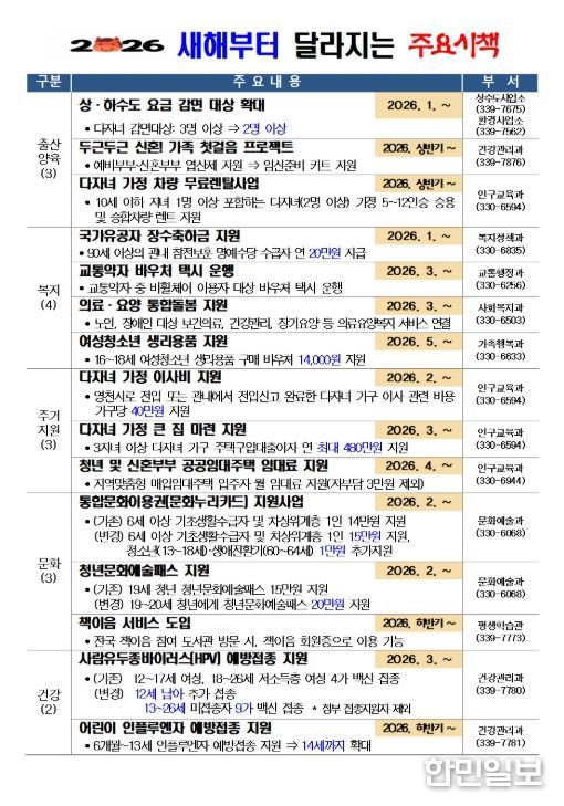 한민일보 서울포커스 김봉순 기자 | 영천시는 2026년 새해를 맞아 출산·양육, 복지, 주거, 문화, 건강 5개 분야에서 시민 생활과 밀접한 총 15개 신규·확대 시책을 시행한다고 밝혔다.