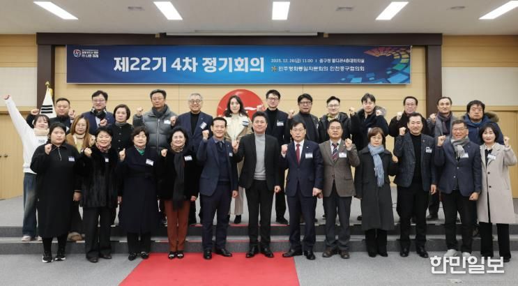 한민일보 서울포커스 김다남 기자 | 민주평화통일자문회의 인천중구협의회는 지난 29일 오전 11시, 중구청 월디관 4층 회의실에서 김정헌 중구청장, 자문위원 등 50명이 참석한 가운데 ‘화해·협력의 남북관계 재정립을 위한 정책방향’을 주제로 ‘2025년 4차 정기회의’를 개최했다.