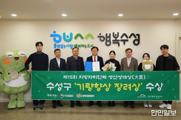 한민일보 서울포커스 임경복 기자 | 대구 수성구는 행정안전부와 한국생산성본부가 공동 주최한 ‘제15회 지방자치단체 생산성대상’에서 생산성지수 부문 ‘기량향상 장려상’을 수상했다고 밝혔다.