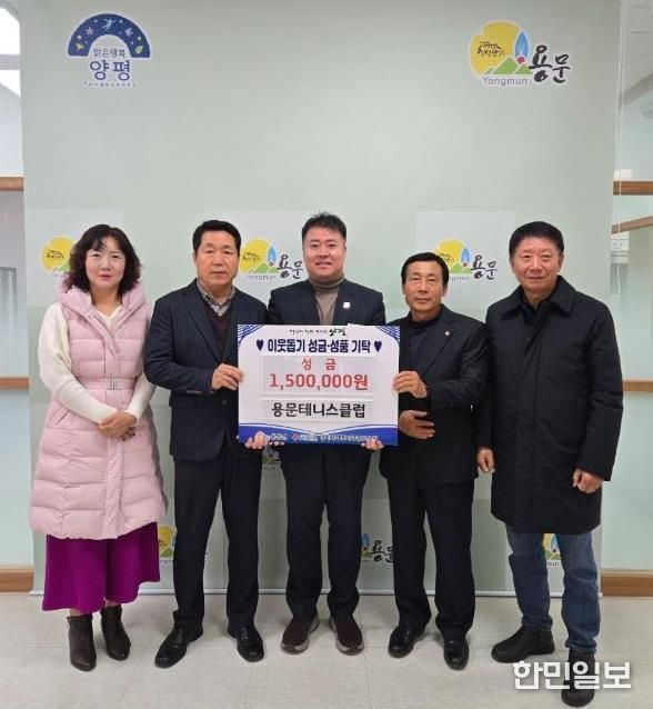 홍명기 용문면장은 “연말연시마다 지역사회를 위해 따뜻한 나눔을 실천해 주시는 용문테니스클럽에 깊이 감사드린다”며 “회원 여러분의 정성이 어려운 이웃들에게 큰 위로와 희망이 될 것”이라고 감사의 뜻을 전했다.