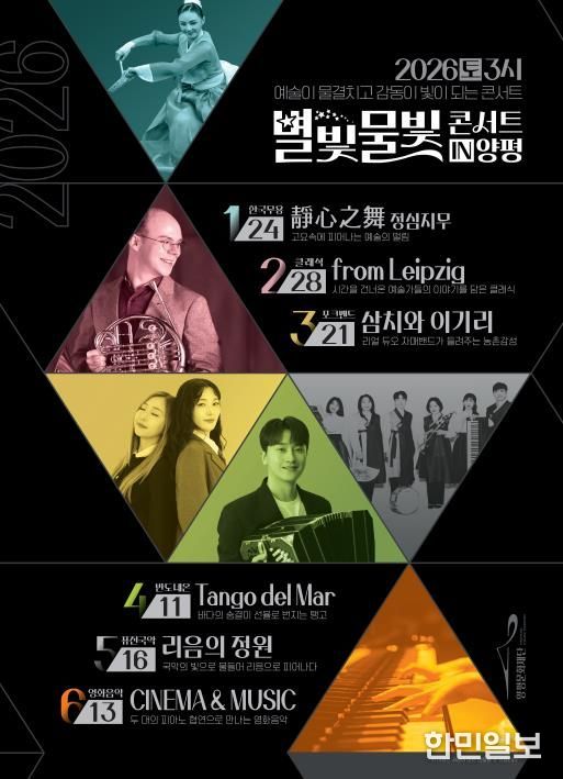 한민일보 서울포커스 차재만 기자 | 양평문화재단은 군민들에게 깊은 감동과 예술적 즐거움을 선사할 생활문화센터 정기공연 ‘2026 별빛물빛 콘서트 in 양평’의 상반기 라인업을 확정했다. 이에 따라 내년도 첫 공연을 1월 24일에 올린다.