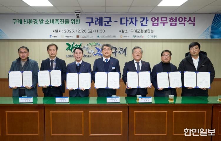 한민일보 서울포커스 임경복 기자 | 구례군은 친환경 농업의 가치를 확산하고 쌀 소비 기반을 강화하기 위해 공공·금융·농협·민간이 참여하는 다자간 업무협약을 지난 12월 26일 군청 상황실에서 체결했다.