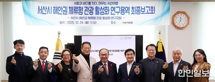 한민일보 서울포커스 임경복 기자 | 서산시의회 의원 연구모임인 ‘서산시 해안권 체류형 관광 활성화 연구모임’이 29일 서산시의회 의원 대기실에서 ‘서산시 해안권 체류형 관광 활성화 연구용역’ 최종보고회를 개최했다.