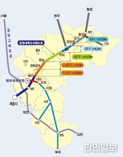 한민일보 서울포커스 임경복 기자 | 충북도는 충청내륙고속화도로(57.8㎞) 3~4공구 잔여구간인 ‘충주시 대소원면 만정리(신촌교차로)’에서 ‘제천시 봉양읍 장평리(봉양역 앞 교차로)’까지 17.4㎞를 30일(화) 12시에 추가 개통한다고 밝혔다.