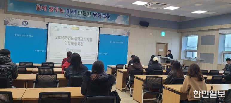 한민일보 서울포커스 임경복 기자 | 당진교육지원청은 12. 29일 오후 4시 입학추첨관리위원회 위원과 학부모가 참석한 가운데 배정프로그램을 이용해 ‘ 2026학년도 중학교 무시험 입학 배정 추첨’을 실시했다.