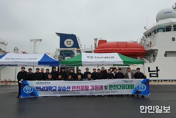 한민일보 서울포커스 박정민 기자 | 전남대학교 수산해양대학(학장 서호영)은 지난 24일 여수 신북항에서 선박실습센터 및 실습선 교직원들이 참석한 가운데, 실습선의 안전 운항과 승선자의 무사 안녕을 다짐하는 ‘전남대학교 실습선 안전기원제 및 안전 다짐 대회’를 개최했다.
