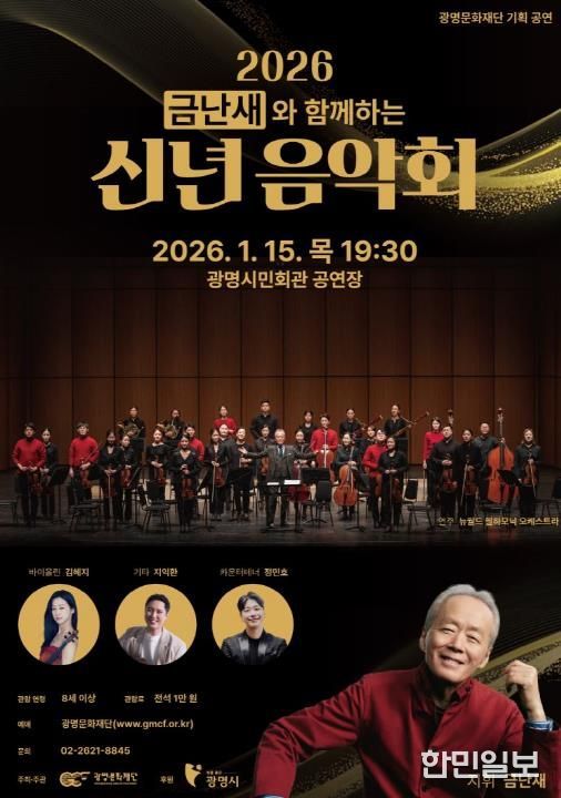 한민일보 서울포커스 임광현 기자 | (재)광명문화재단은 2026년 새해를 맞아 지휘자 금난새와 뉴월드 필하모닉 오케스트라가 함께하는 ‘금난새와 함께하는 '신년 음악회'’를 오는 1월 15일 오후 7시 30분, 광명시민회관 공연장에서 개최한다.