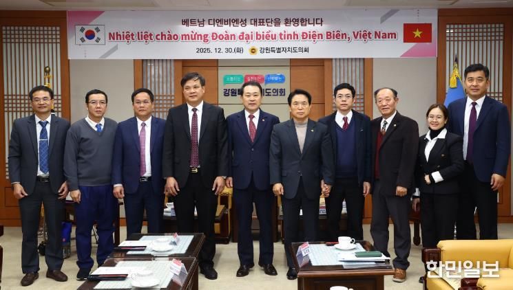 한민일보 서울포커스 곽중희 기자 | 강원특별자치도의회는 30일 도의회를 방문한 베트남 디엔비엔성 대표단을 영접하고, 양 지역 간 우호 증진과 교류 협력 방안을 논의하기 위한 간담회를 가졌다고 밝혔다.