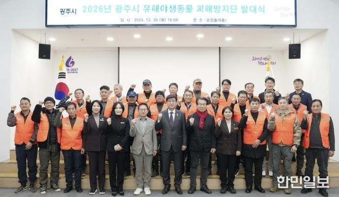 한민일보 서울포커스 임경복 기자 | 광주시는 지난 30일 시청 순암홀에서 ‘2026년도 광주시 유해야생동물 피해방지단’ 발대식을 개최했다.