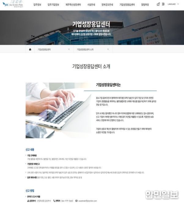 한민일보 서울포커스 임경복 기자 | 제주국제자유도시개발센터는 제주첨단과학기술단지 입주기업과 관련 기업의 규제·경영 애로사항을 체계적으로 지원하기 위해 ‘기업성장응답센터’를 온라인으로 개소하고 본격 운영에 들어갔다고 밝혔다.