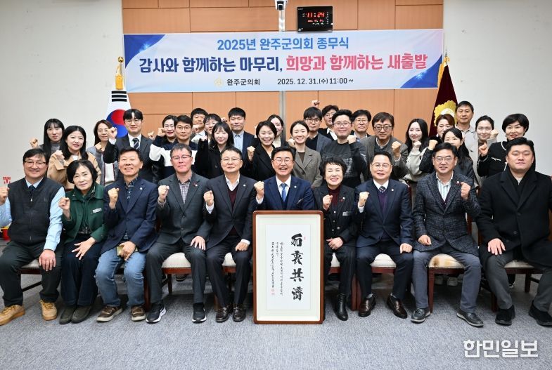 한민일보 서울포커스 박용남 기자 | 완주군의회는 31일 문화강좌실에서 11명 군의원 전원과 의회사무국 직원 등 40여 명이 참석한 가운데 2025년도 종무식을 개최했다.