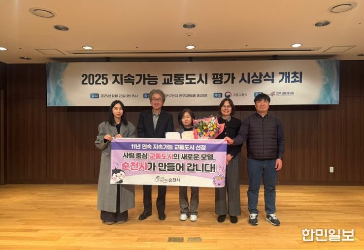 한민일보 서울포커스 임광현 기자 | 순천시가 국토교통부 주관 2025년 지속가능 교통도시 평가에서 인구 30만 미만 ~ 10만 이상 ‘라 그룹’ 내 우수 지자체로 선정되며, 11년 연속 우수 평가를 받는 성과를 거뒀다.