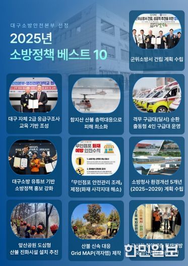 한민일보 서울포커스 최성훈 기자 | 대구소방안전본부는 2025년 한 해 동안 추진한 주요 소방정책 가운데 현장 대응력 강화와 시민 안전 증진에 기여한 ‘2025 대구소방 소방정책 베스트 10’을 선정해 발표했다.